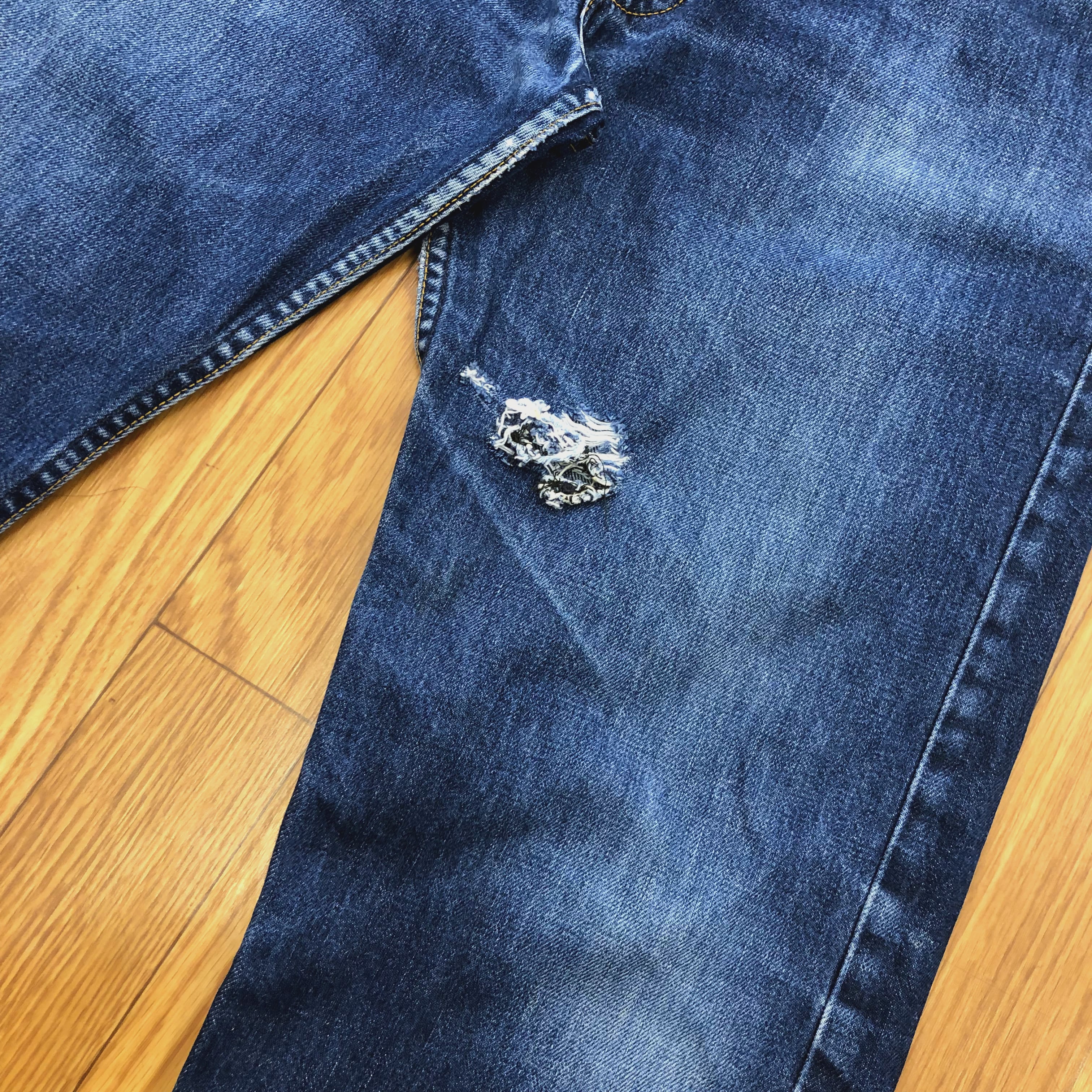 バックポケット、股部分に色落ちあり